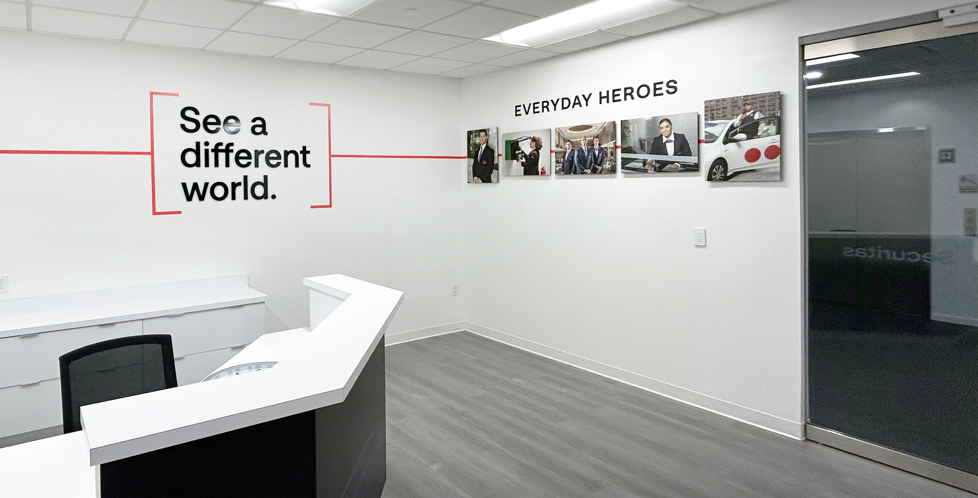 Create a cohesive Securitas brand experience throughout your office to reinforce your corporate identity. Utilize wall and window graphics, hanging images, and a variety of other visual elements to incorporate brand colors, imagery, and design elements.