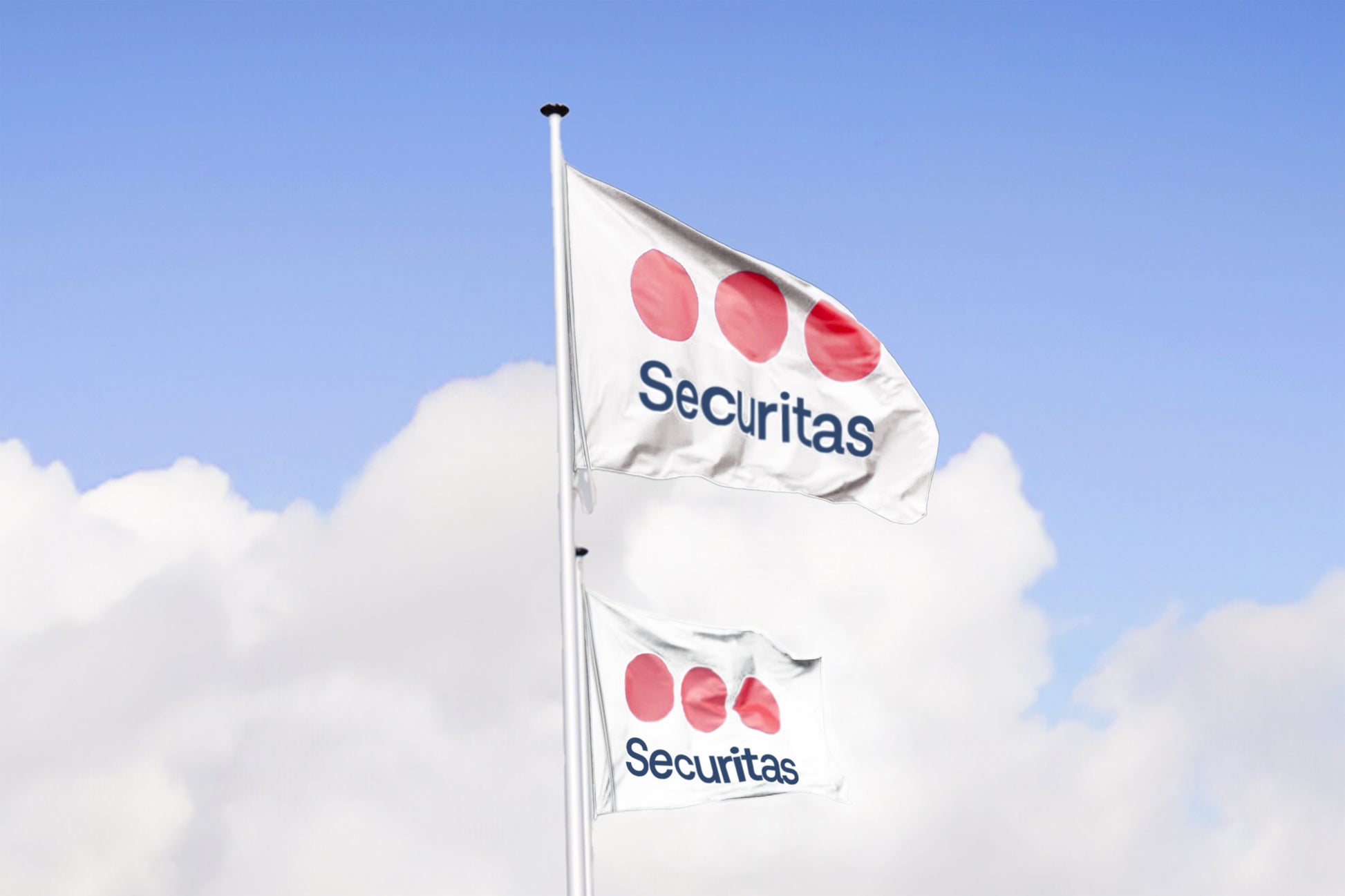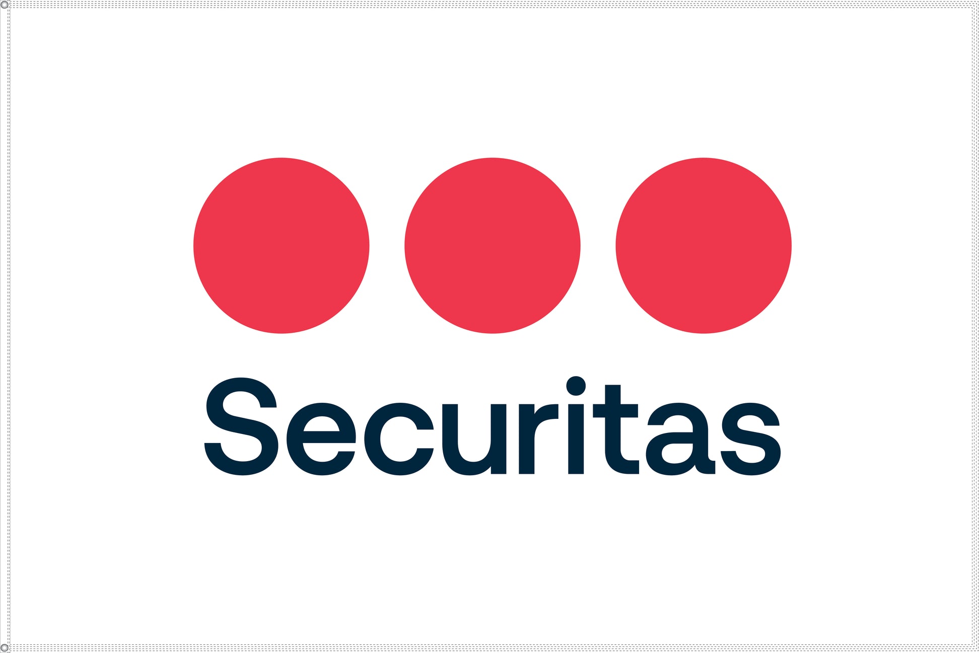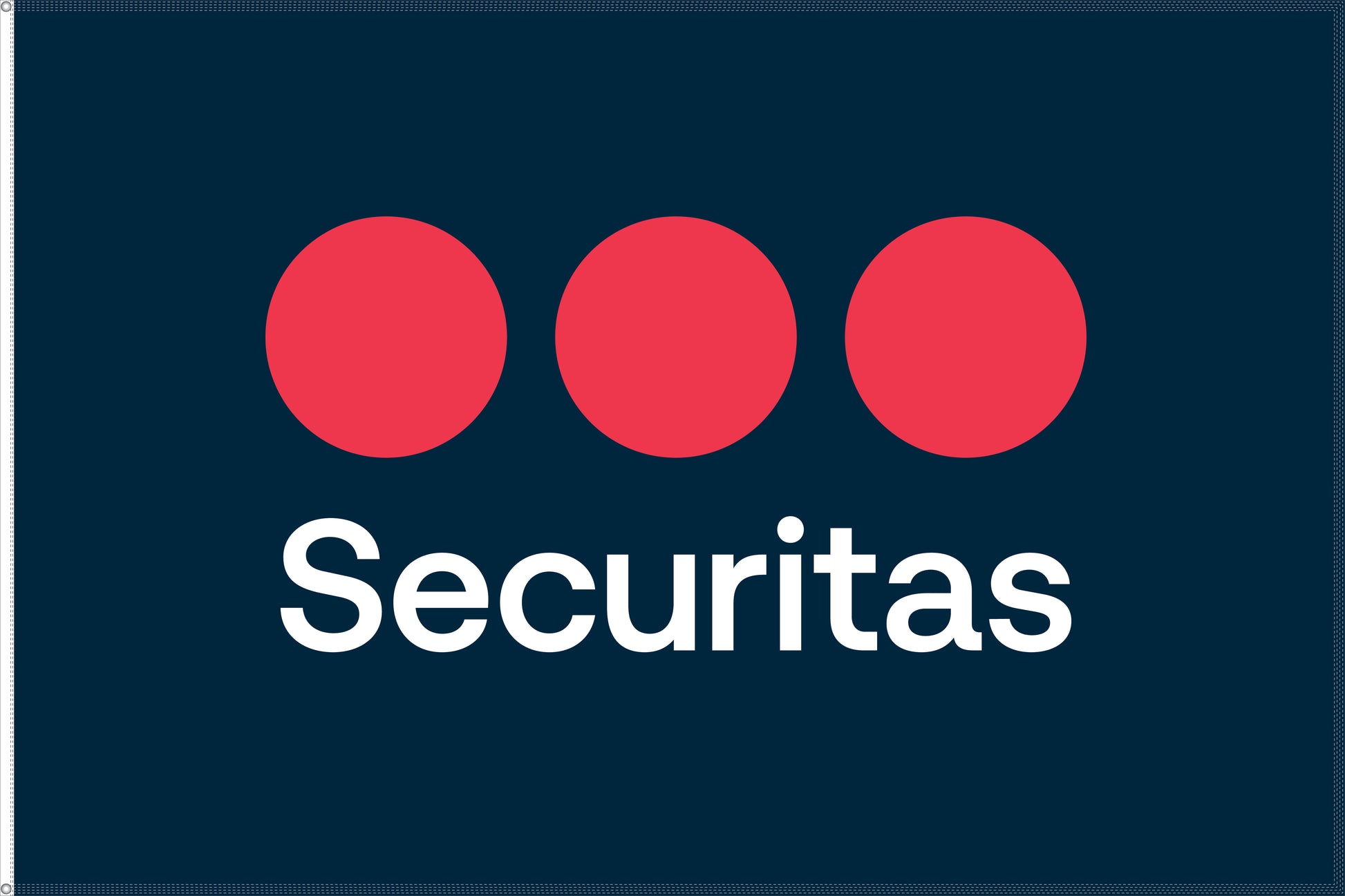 Securitas single or double sided flag is ideal for outdoor or indoor use. Standard finishing includes canvas header and brass grommets.
